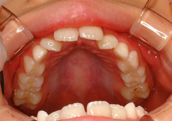 ⑤拡大床後、6前歯のみ約3ヶ月ブラケットを装着し矯正。
