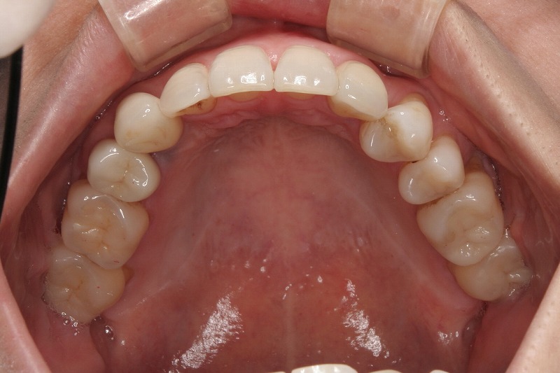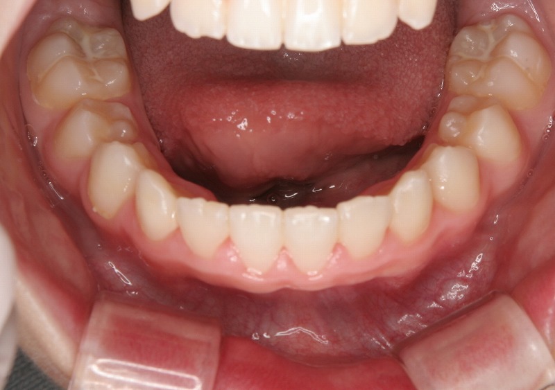 ④1年後スペースが確保され、歯列弓全体も拡大されている。ここまで広がれば,非抜歯で矯正できます。