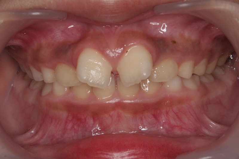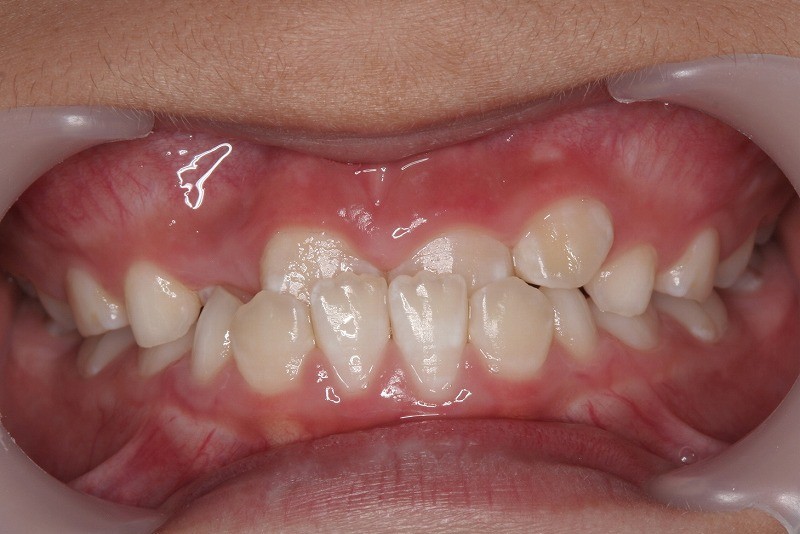 ①術前:8歳 4前歯が反対咬合で歯が並ぶスペースも不足。