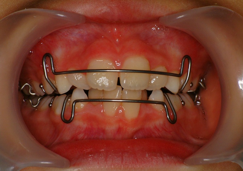 ④4ヵ月後 反対咬合が改善し、歯が並ぶスペースも確保できた。ここまできていれば永久歯列になったときの矯正は簡単です。