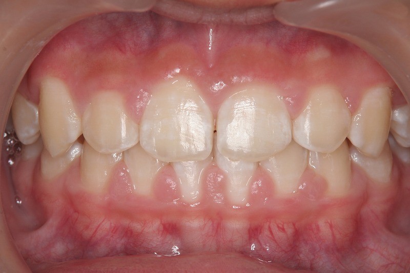 初期治療(早期治療、一期治療)は3歳~12歳頃までの永久歯咬合完成前の段階で、良好な咬合が形成されるように誘導する歌合育成の治療です。この時期は旺盛な成長発育があるので比較的単純な装置で歯の位置や、顎骨の位置関係の改善を行います。